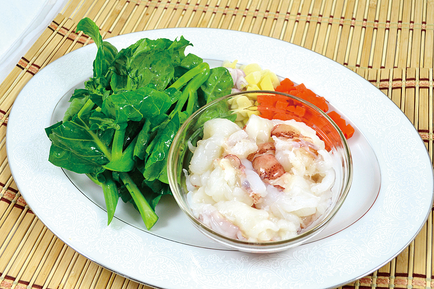 1.龍蝦尾起肉,改成蝦球型,用鹽、雞粉、糖、胡椒粉、蛋白、粟粉醃20分鐘,最後加少許生油拌勻備用。