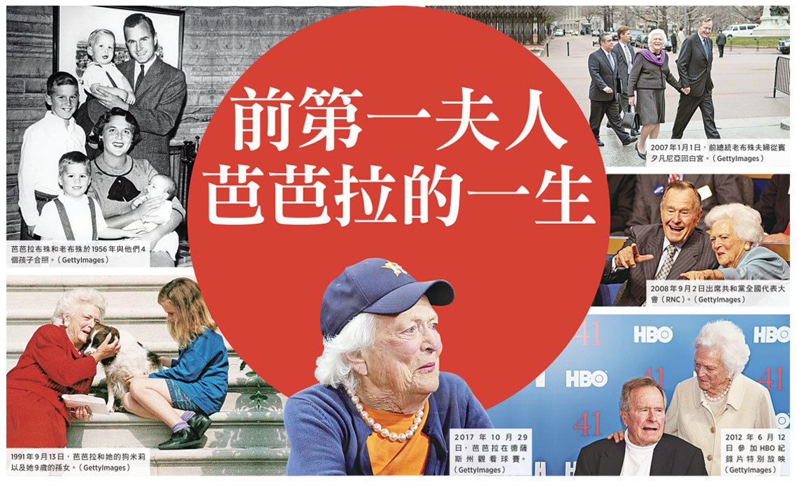 老布殊總統辦公室聲明說,前第一夫人芭芭拉布殊(Barbara Bush)於17日離世,享年92歲。