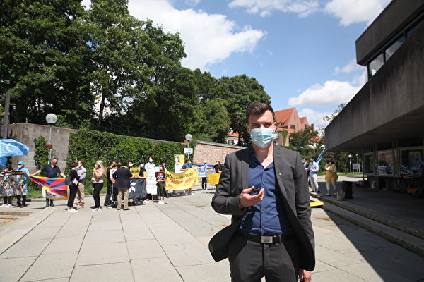 香港人在德國協會(Hongkonger in Deutschland e.V.)的幾名留學生表示,中共通過孔子學院到處宣揚其思想,他們前來呼籲德國停止資助中共的宣傳工具。提到在香港《蘋果日報》被迫關閉,幾位留學生表示,中共害怕自由媒體發表一些它們不願意讓民眾知道的東西,所以香港的新聞自由會被打壓。他們還表示中國的法制不應該在香港存在,中共在香港強制施行《國安法》的做法,不應該在這個世界存在,因為它利用《國安法》來打壓異見人士。