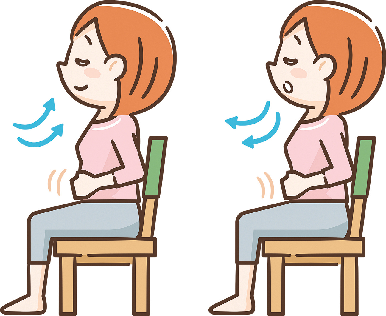 慢慢、輕鬆地吐氣,不要用力,再規律地呼吸一回(吸氣、吐氣)。