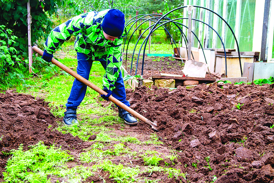 在犁好土地之後,如果覺得土壤的肥力不夠,可以撒一點肥料或者樹葉,然後輕輕地把它們翻進土裏。