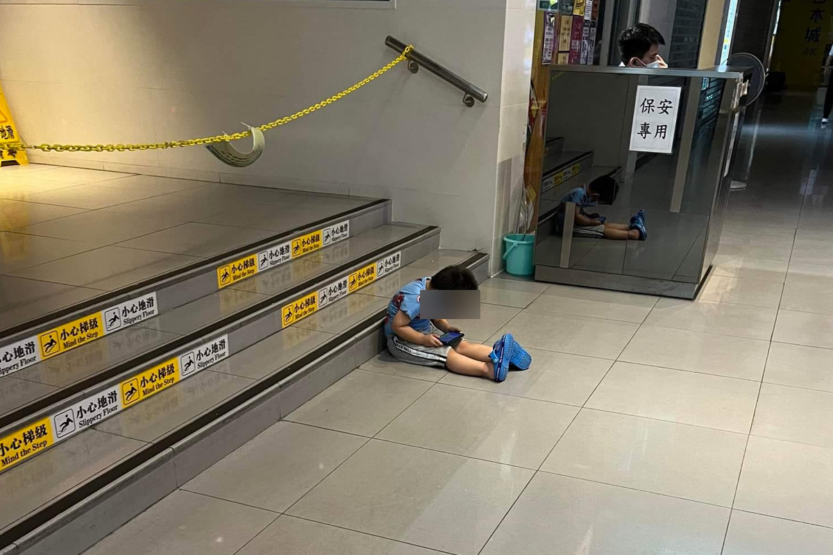昨日網上流傳一張照片,見到一名男童獨自坐在地上玩手機,身邊未見有家長。有網民質疑有人涉疏忽照顧。