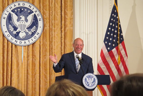 2022年7月26日,前白宮新聞秘書和霍士新聞撰稿人Ari Fleischer在尼克遜圖書館介紹他的新書《壓制、欺騙、勢利和偏見:為甚麼新聞界如此錯誤——而且毫不在乎》(Suppression, Deception, Snobbery and Bias: Why the Press Gets So Much Wrong-and Just Doesn’t Care)。(李梅/大紀元)