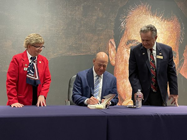 2022年7月26日,前白宮新聞秘書和霍士新聞撰稿人Ari Fleischer在尼克遜圖書館為他的新書《壓制、欺騙、勢利和偏見:為甚麼新聞界如此錯誤——而且毫不在乎》(Suppression, Deception, Snobbery and Bias: Why the Press Gets So Much Wrong-and Just Doesn’t Care)簽名。(李梅/大紀元)