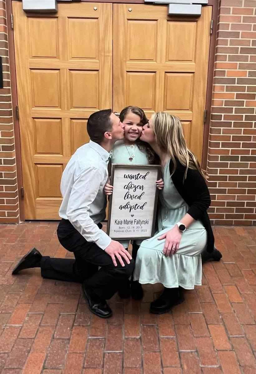 去年3月他們收養了現年9歲的大女兒凱亞(Kaia)。隨後在同年,2022年11月18日,全國收養日,他們又正式領養了另一個棄嬰寶寶,姐姐凱亞給小寶寶取名邁亞‧喬伊(Myah Joy)。一路走來,謝爾比覺得,是神將這兩個女兒帶到法爾廷斯基家。
