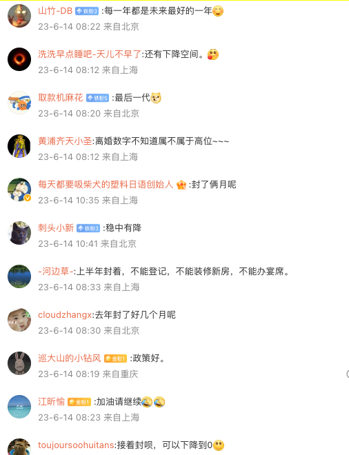 對此,網民說:「每一年都是未來最好的一年」,「還有下降空間」,「最後一代」。更有網民嘲諷:「政策好」,「加油請繼續」,「接著封唄,可以下降到0」,「持續下降是趨勢」。