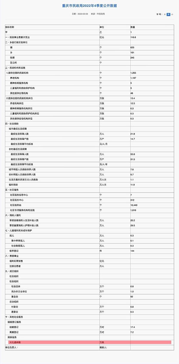6月9日,也就是中共民政部發布「2022年4季度民政統計數據」的同一天,重慶市民政局發布通知說,接到民政部的指示,2023年度重慶市民政統計數據暫不公布。#