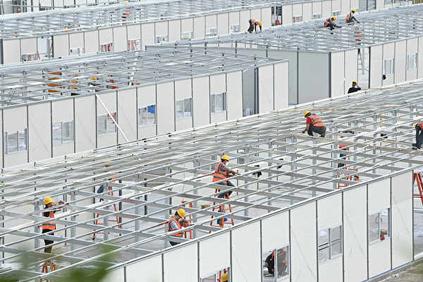 (中國疫情期間,廣州市南沙區方艙醫院的建設現場。)