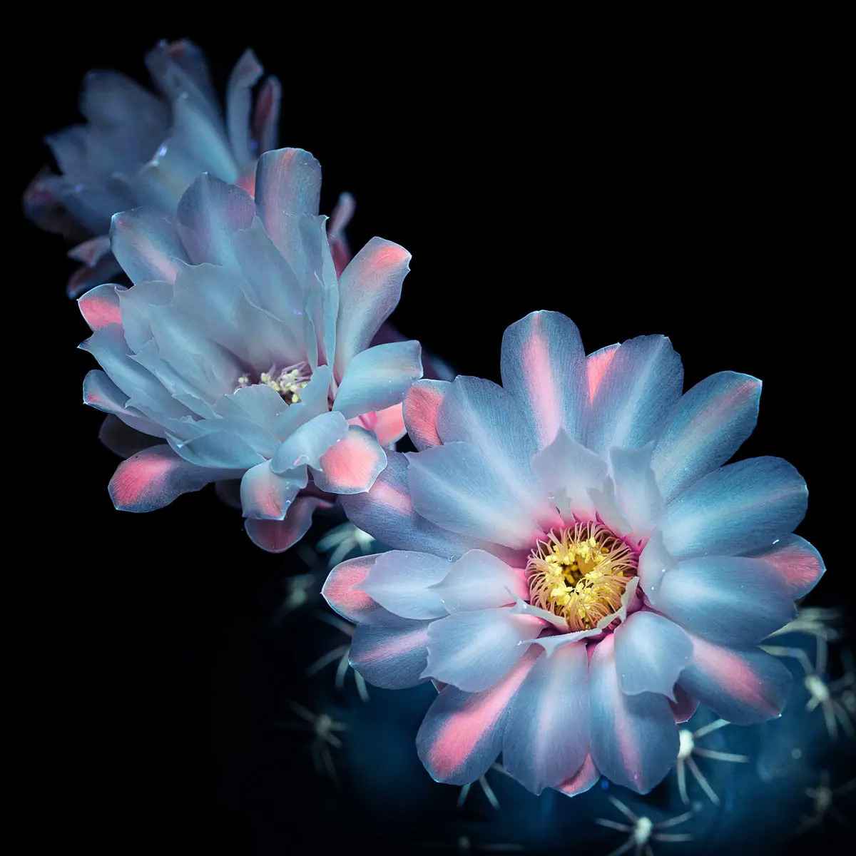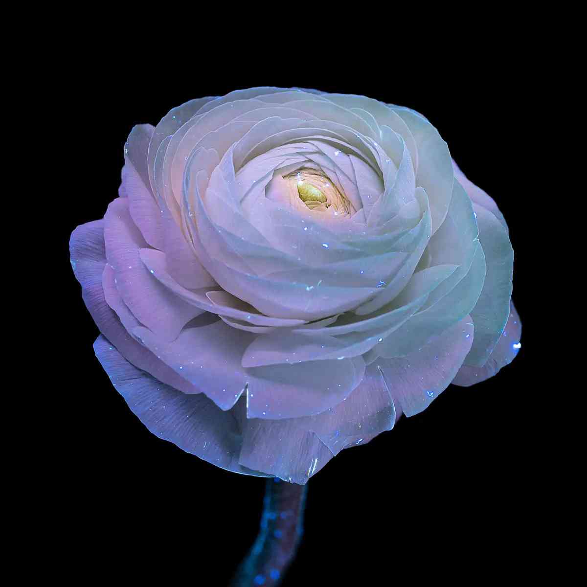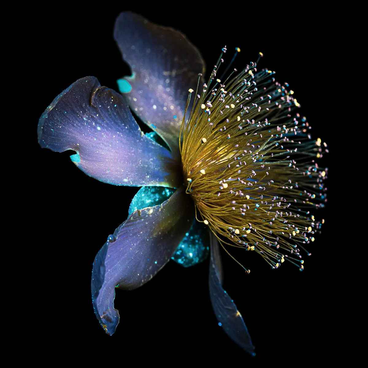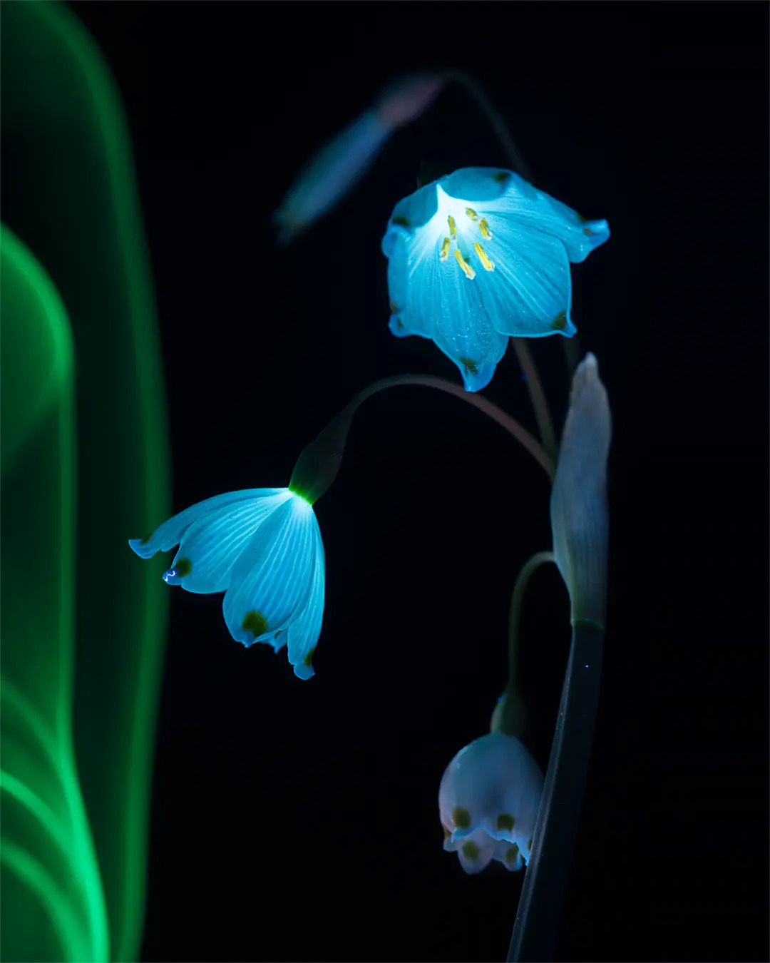 「每個鏡頭都是獨一無二的」,她說,「因為用紫外線手電筒照向花朵時,每次的角度不可能完全一致,而且每次拍攝時的光影效果也不同。」