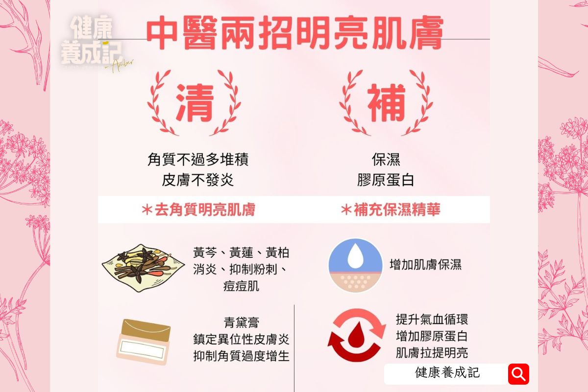 「補」簡單來說就是保濕及增加膠原蛋白,也就是透過調整體質,增加氣血循環,將養份帶到皮膚,讓肌膚看起來淨白、有彈性。因此,在整體觀上,中醫調養更具成效。