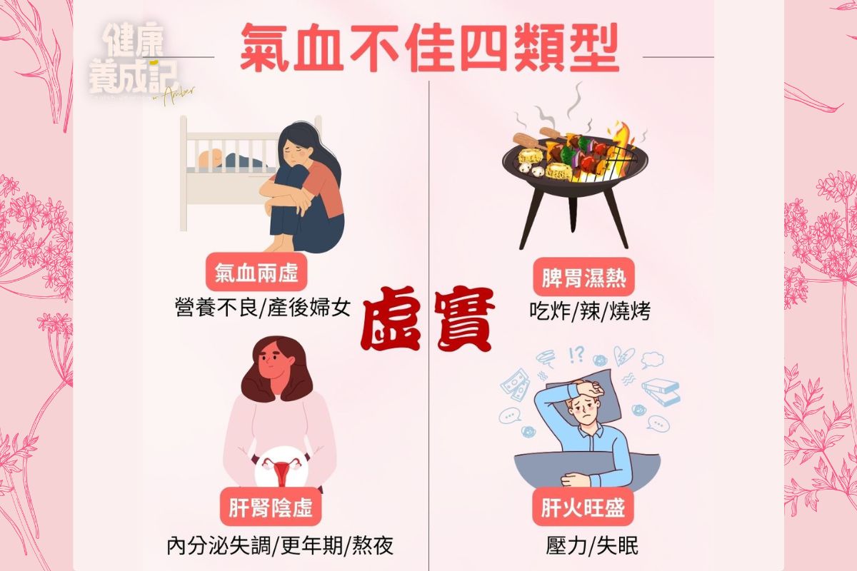 吳多加表示,中醫將與皮膚暗沉有關的氣血不佳問題大致分為虛症及實症。虛症分為氣血兩虛及肝腎陰虛兩種類型。