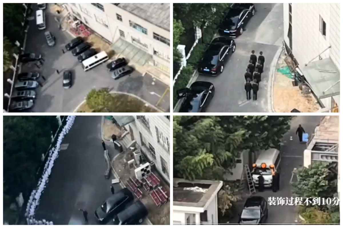 影片中的照片拍到了現場停放的黑色帕薩特、警車、特警車,中午在樓下吃盒飯的特警,下午1點來的儀仗隊,一排穿著白袍集合的醫務人員,10分鐘內裝飾好的靈車,封路,醫院樓下演練的攝影師。最終使用的是一輛更大的金色靈車。
