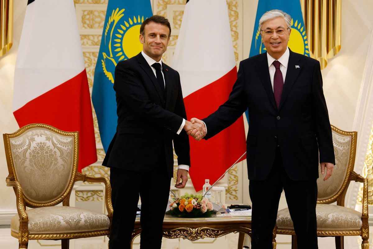 馬克龍已抵達了哈薩克首都阿斯塔納(Astana),他將與哈薩克總統托卡耶夫(Kassym-Jomart Tokayev)舉行會談,並簽署包括製藥和航太計劃在內的多份合約。