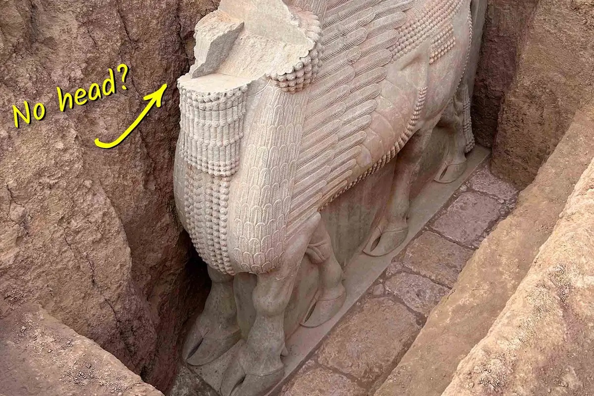 這尊由純白色雪花石膏雕刻而成的巨大神獸是一隻拉馬蘇(lamassu,註:是亞述文化中半人半獸的怪物)。它有著公牛的身體、鳥的翅膀和人的頭,這些龐大的守護者曾經凝視著那些進入古代亞述首都杜爾舍魯金(Dur-Sharrukin,今伊拉克豪爾薩巴德村)大門的人。