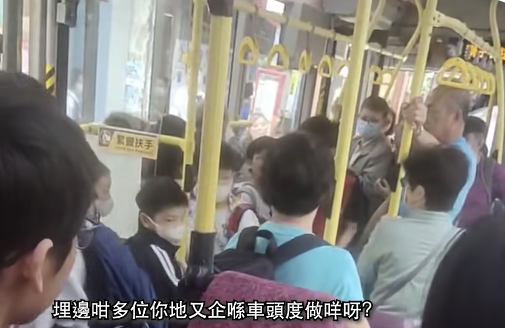 網傳影片顯示,這名九巴司機走到車廂中間大聲喝罵,「埋邊咁多位你哋又企喺車頭度做咩啊(裏面那麼多位置,你們又站在車頭做什麼?)」還質問他們是哪間學校,揚言向學校投訴。小學生們轉身,魚貫行入車尾。