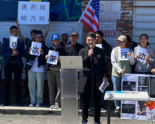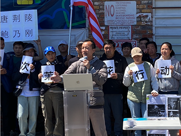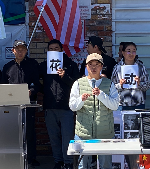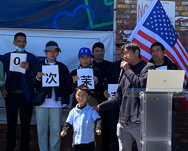 2024年4月6日,中國民主黨成員張振振在洛杉磯縣丁胖子民主廣場主持「聲援中國留守兒童」集會。(馬尚恩/大紀元)