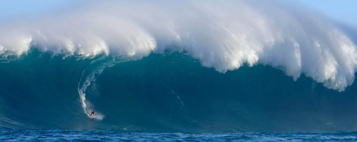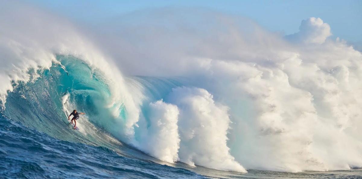 阿拉斯加以南的冬季風暴使這片海洋動起來,它不受限制地越過公海,然後直接伏擊夏威夷。這組被稱為夏威夷的島嶼是從海底伸出的巨山,這是一堵相當明顯的牆,突如其來的淺灘分隔了到來的巨浪。夏威夷北岸首當其衝地受到了水力運動的影響,當1980年代的衝浪者意識到他們可以滑水並穿越巨浪下面的甬道時,夏威夷北岸就出名了。