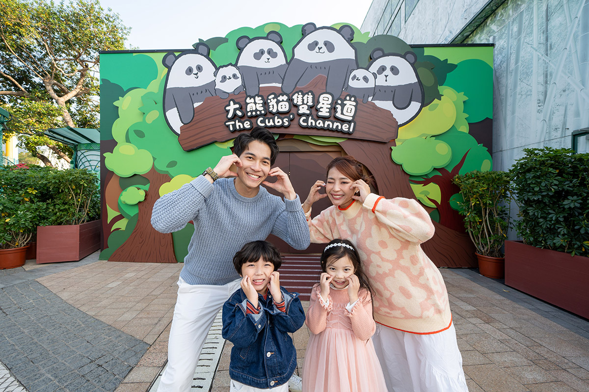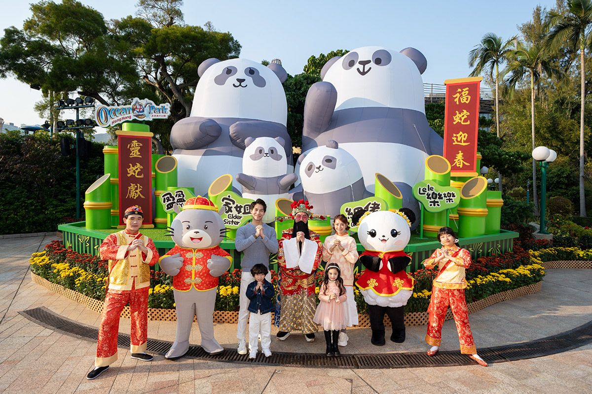 大熊貓雙胞胎與爸爸樂樂、媽媽盈盈,以及新成員安安和可可更化身特「大」熊貓,在海濱樂園廣場「至萌『大』熊貓慶團圓」送上新年祝福。
