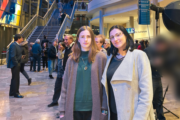 2025年3月21日晚,歌劇演員Alicja Wysocka(右)和女兒在密西沙加表演藝術中心觀看了神韻新紀元藝術團的首場演出。(王蘭/大紀元)