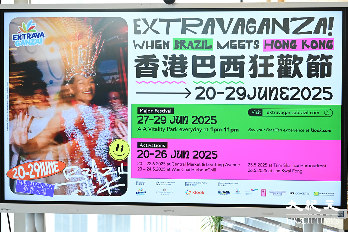 由Extravaganza主辦的「香港巴西狂歡節」將於2025年6月20日至29日首度登陸香港,一連10天於維港沿岸10大地標帶來免費巴西音樂、舞蹈、美食與文化體驗,預計吸引逾3萬名觀眾,其中30%為國際旅客。