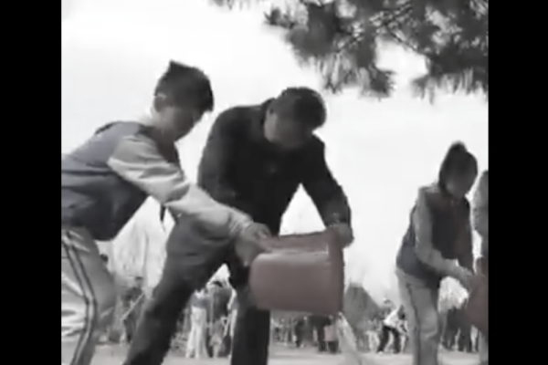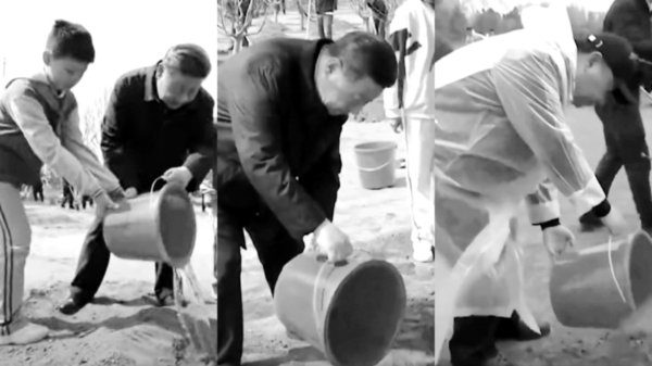 中共黨魁習近平近日參加植樹活動,他和小學生共提半桶水的影片在網絡流傳,而往年習是一人提水桶,由此引發猜測。