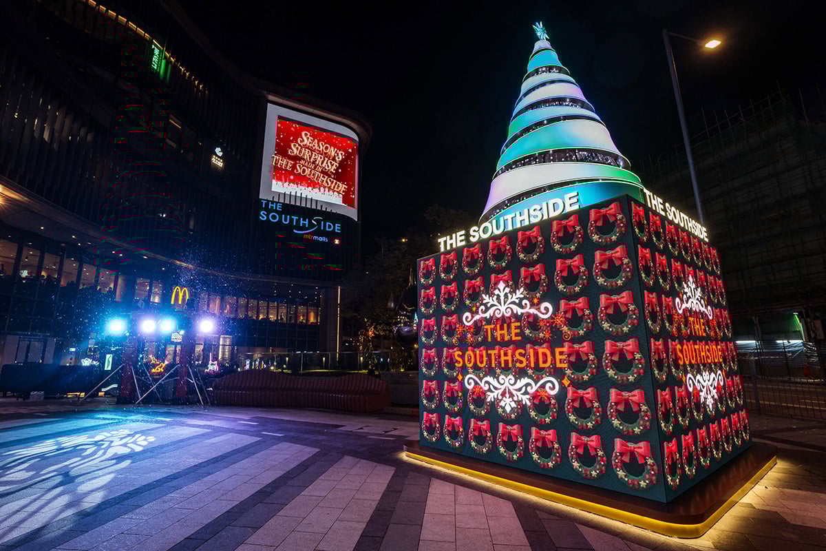 THE SOUTHSIDE由即日起至2026年1月4日,呈獻「Dazzling Christmas」聖誕主題裝置。中庭呈現約10米高巨型星光聖誕樹,綴滿近6,000顆閃耀聖誕裝飾。巨型星光聖誕樹下更設置7大主題打卡場景,場內同時設有巨型互動水晶球裝置,徐步走近,燈光隨即幻變。