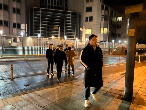 走向使館對街橋面的途中,他們遇到兩名「非常鬼祟的中國男子」。其中一人看到蘇雨桐後「仔細盯看了她的臉」,隨即「掏出手機打電話」,像是發出「狗哨」,而後大使館內便有一群人迅速湧出。她形容,這彷彿是大使館「提前做了部署」。