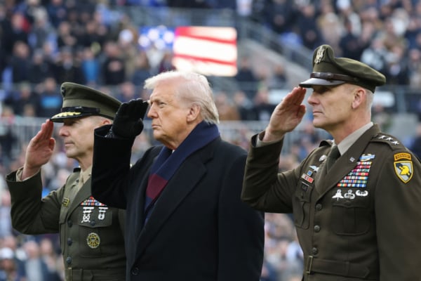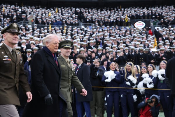 美國總統特朗普(Donald Trump)周六(12月13日)到訪巴爾的摩M&T銀行體育場,出席一年一度的美國陸軍—海軍大學欖球賽(Army–Navy Game),並在賽前主持開球擲幣儀式,延續歷屆美國總統造訪這場百年傳統賽事的習慣。