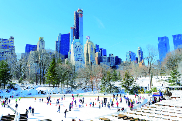 而當你沿著步道來到公園南方稍深處,會聽見另一種冬日聲音,沃爾曼溜冰場(Wollman Rink)今年迎來75周年慶,這個著名的溜冰場曾出現在《愛情故事》、《博物館奇妙夜》和《寶貝智多星2》等電影中,也是遊客的必訪景點。下午的陽光落下時,冰面被照得像一塊流動的銀盤,小朋友與大人一同圈出弧線。夜幕降臨,四周燈光亮起,滑冰的人影在冰面上交錯,一瞬間你會覺得自己彷彿闖入一首紐約冬夜戀歌之中。