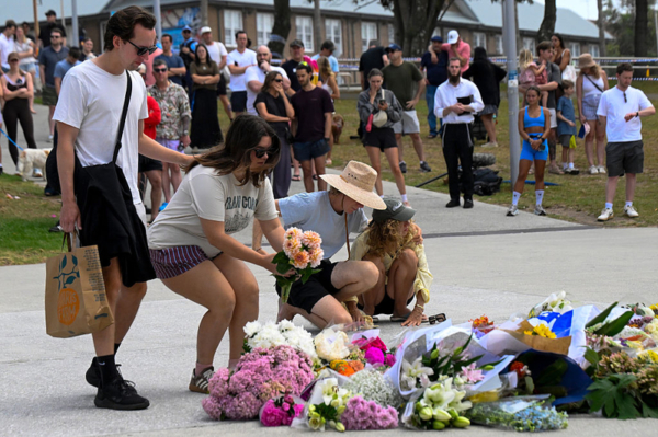 12月14日傍晚,在悉尼著名的邦岱海灘發生了一宗反猶太槍擊事件,其中16人喪生,42人受傷。 15日悉尼民眾紛紛來到事件發生地悼念罹難者,並為他們祈禱。(DAVID GRAY / AFP via Getty Images)