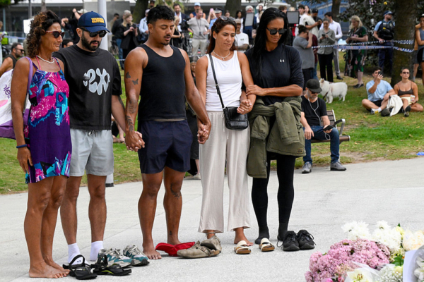 12月14日傍晚,在悉尼著名的邦岱海灘發生了一宗反猶太槍擊事件,其中16人喪生,42人受傷。 15日悉尼民眾紛紛來到事件發生地悼念罹難者,並為他們祈禱。(George Chan/Getty Images)