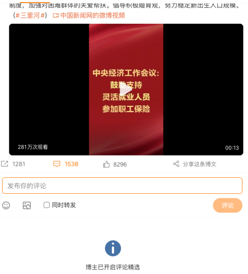 中國新聞網官方微博報道上述內容後,大量網民湧入留言,以至其開啟評論精選。
