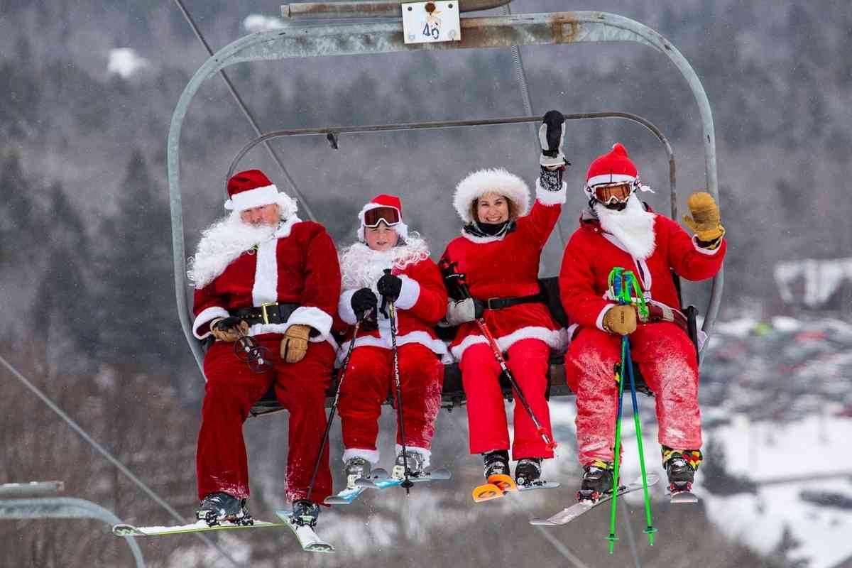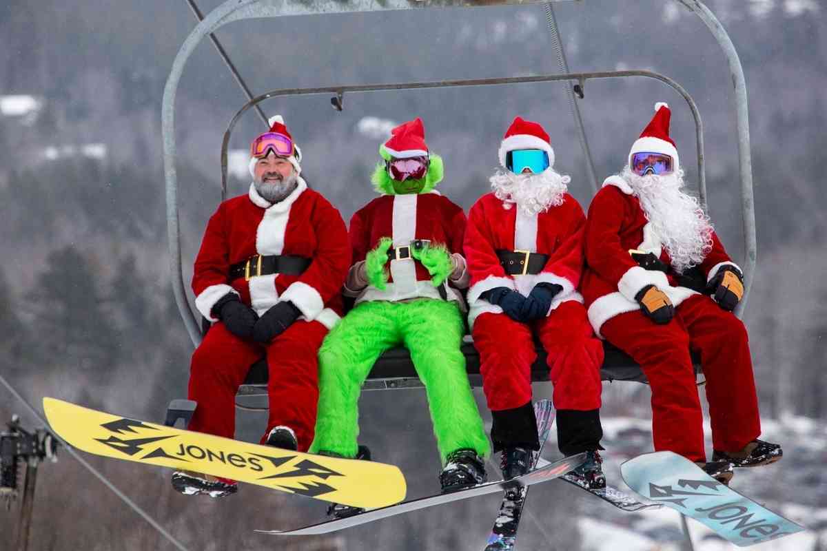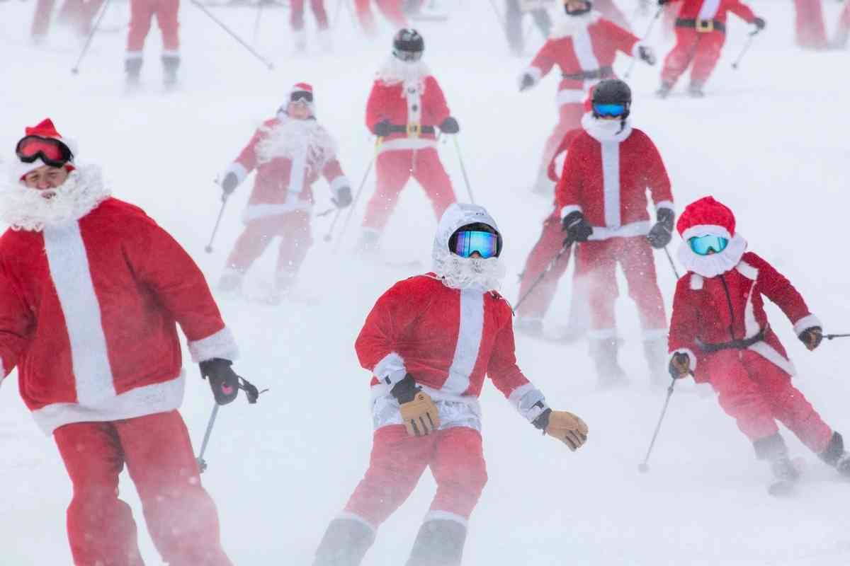 當天,聖誕老人們先乘坐纜車上山,然後踩著單板或雙板滑雪板浩浩蕩蕩地從高處滑下來,白鬍子和聖誕帽迎著冷風飄揚,場面異常壯觀。其中還有滑雪者扮成綠毛怪格林奇,穿著紅衣、紅帽混跡在聖誕老人中。