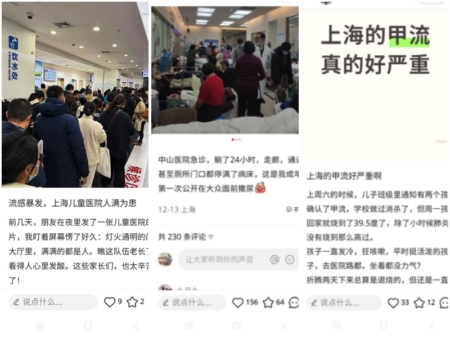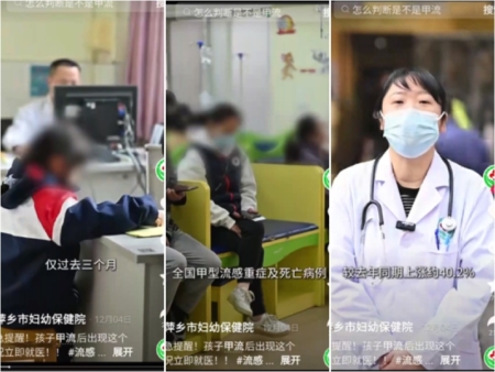 進入12月之後,中國各地甲流疫情持續加重,官媒甚至用高峰形容。婦幼兒醫院醫生介紹,中共疾控報告稱,近三個月甲流重症住院進ICU和死亡比去年同期增加40.2%。多個醫生警告,甲流H3N2併發症死亡率高,倖存或留後遺症,48小時內是治療黃金期。
