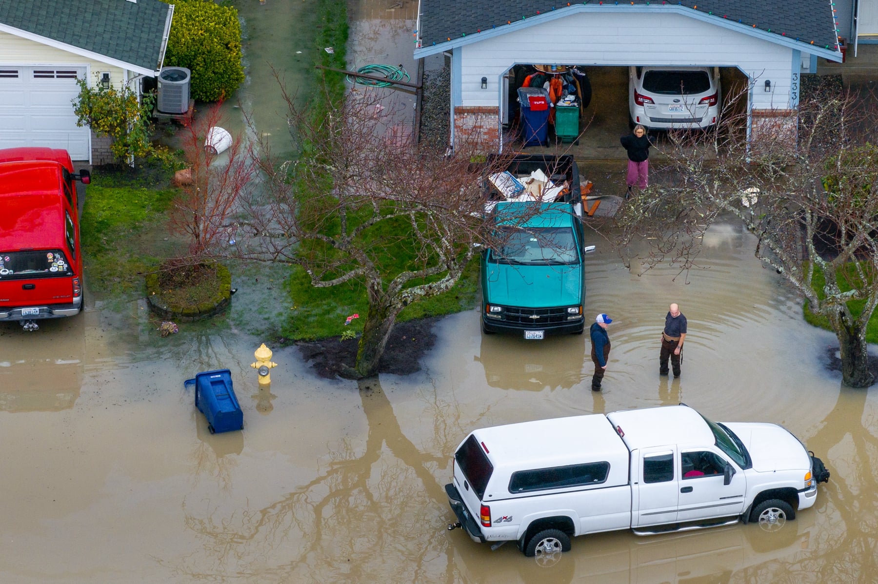 周二(12月16日)清晨,位於西雅圖市以南30多公里處的太平洋城(Pacific)境內的白河(White River)又有一處堤壩決口,導致金縣緊急事務管理部門對約2,100名居民發布三級「立即撤離」(Go Now)命令,警方逐戶敲門通知居民撤離,同時工程人員持續加固河岸以防二次潰決。