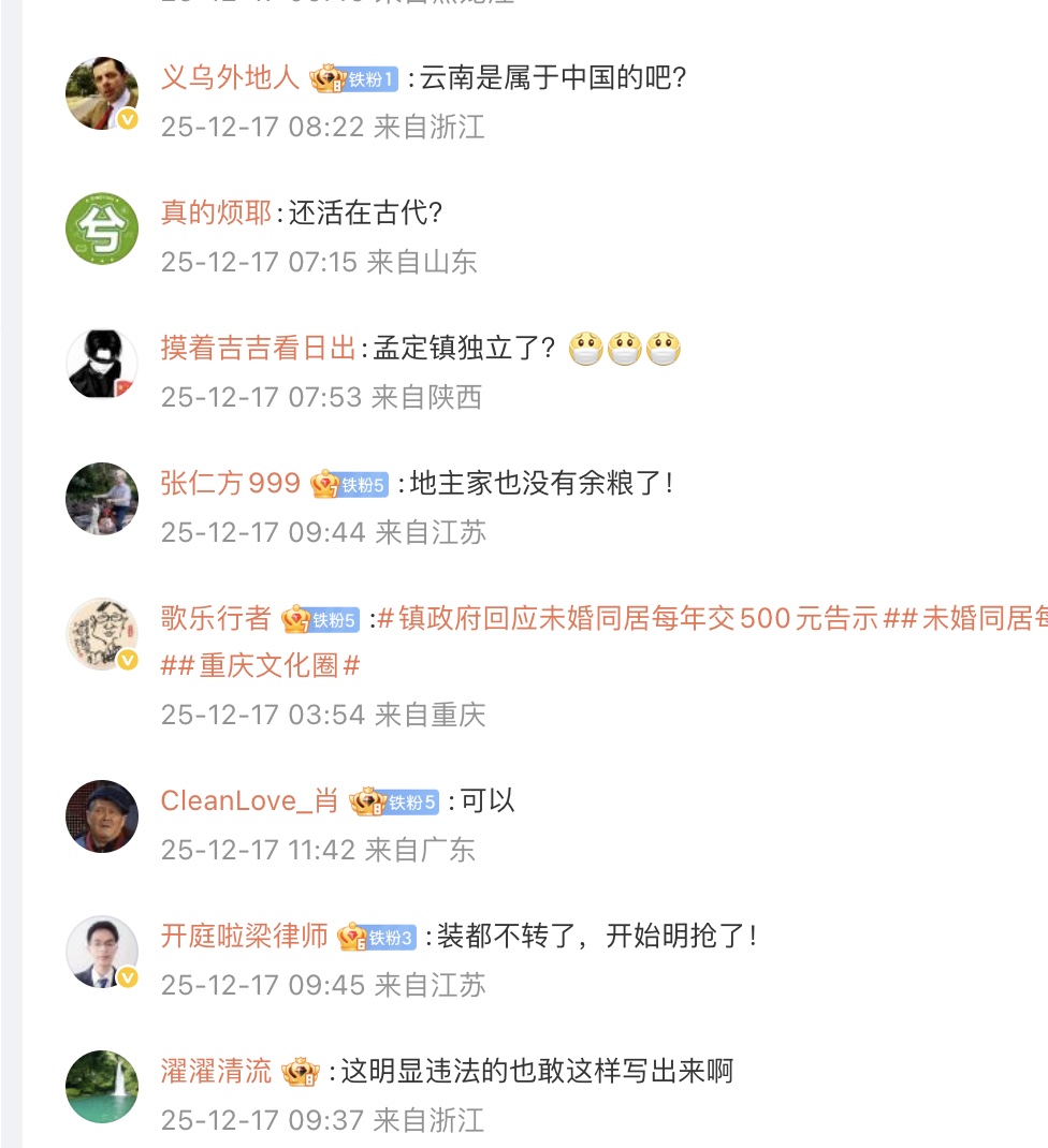 還有網民嘲諷,「他們怕是要獨立了」「啊,孟定鎮獨立了?」「這是村還是國」「敢私立法規斂財?」「雲南是屬於中國的吧?」
