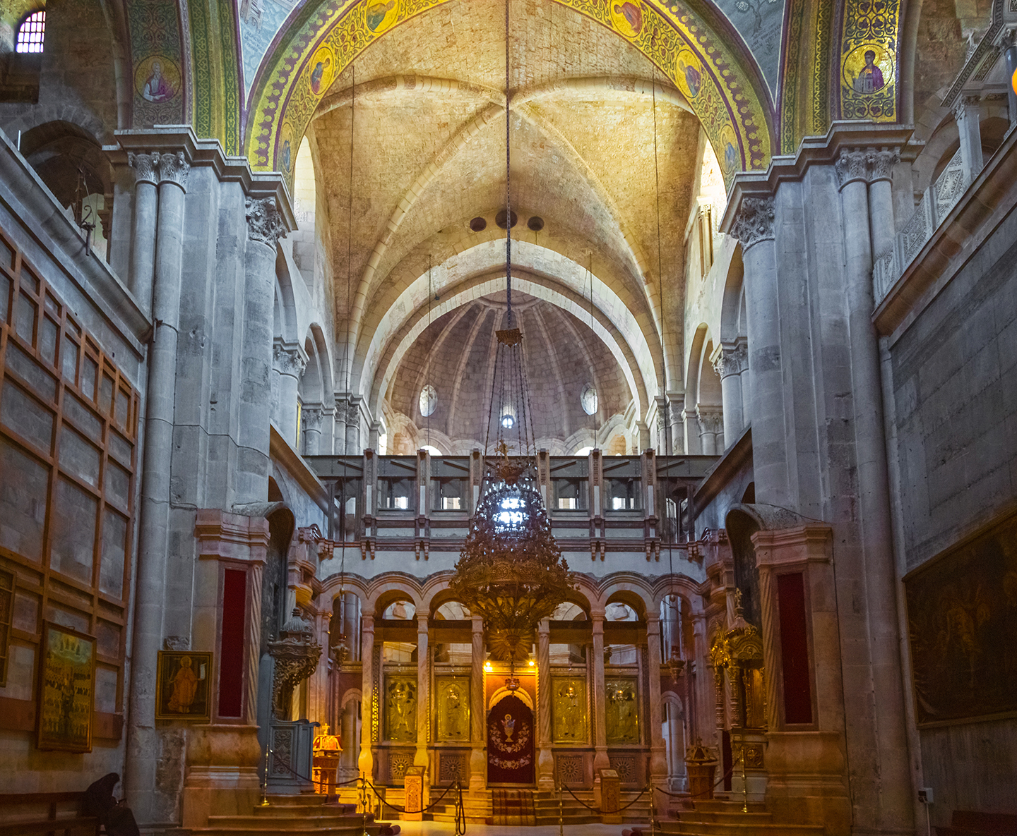 正殿穹頂飾有現代拜占庭風格的馬賽克,呈現「全能者基督」(Christ Pantocrator)形象,Pantocrator意為「萬能主宰」(All-Powerful)或「萬物統御者」(the Ruler of All)。這類圖像在東方基督教(Eastern Christianity)藝術中極為常見。在這裏,基督為耶路撒冷的主教與宗主們所環繞。