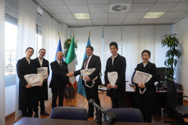 兩位資深政治顧問代表:前意大利副部長、Segni市市長Silvano Moffa先生,以及黨派協調人兼AGENS(運輸與服務業聯合會)總監Fabrizio Molina先生,偕同羅馬市議員Federico Rocca先生,在Palazzo della Regione Lazio(拉齊奧大區宮),設早餐款待,並贈送禮物,向神韻藝術家表達由衷的尊崇與敬意。