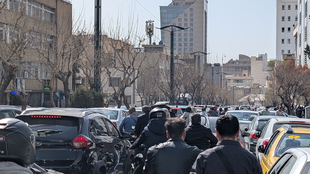 2026年2月28日,以色列對伊朗發動「先發制人」攻擊後,首都德黑蘭民眾佇足街道觀望。(Sohrab / Middle East Images / AFP via Getty Images)