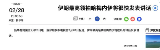 周六(2月28日),美國和以色列聯手空襲伊朗,啟動代號「史詩之怒行動」的軍事打擊。隨後伊朗發動了前所未有的報復性襲擊。中共黨媒稱哈梅內伊「幾分鐘後」露面,但數小時後沒動靜,多個消息源說伊朗最高領袖哈梅內伊已經死亡。伊朗人載歌載舞慶祝。