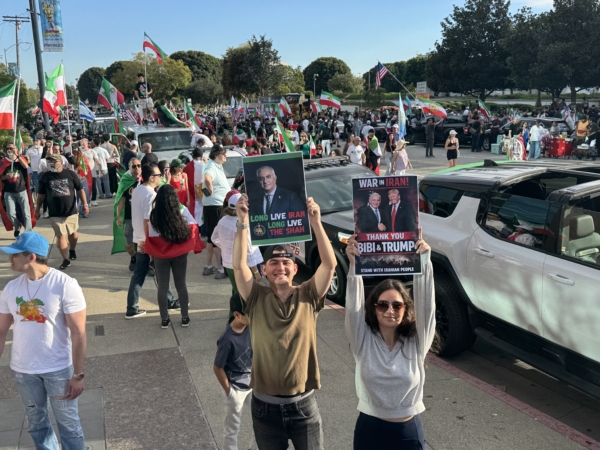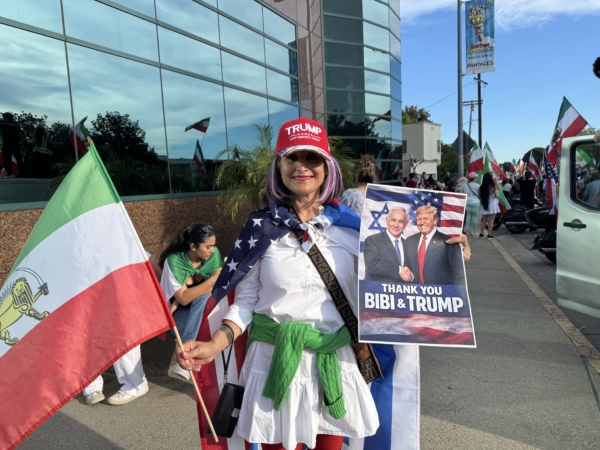 「我們來這裏是為了慶祝伊朗政權的垮台,它即將結束。我們太高興了,這對我們伊朗人來說是一項巨大的成就。」伊朗裔的洛杉磯居民雪莉(Sherry S)說,「伊朗政權是一個殺戮政權,到處在殺人。只要你有自主思維,只有被關進監獄和死亡兩條路。所以我們迫切想要這個政權垮台。」