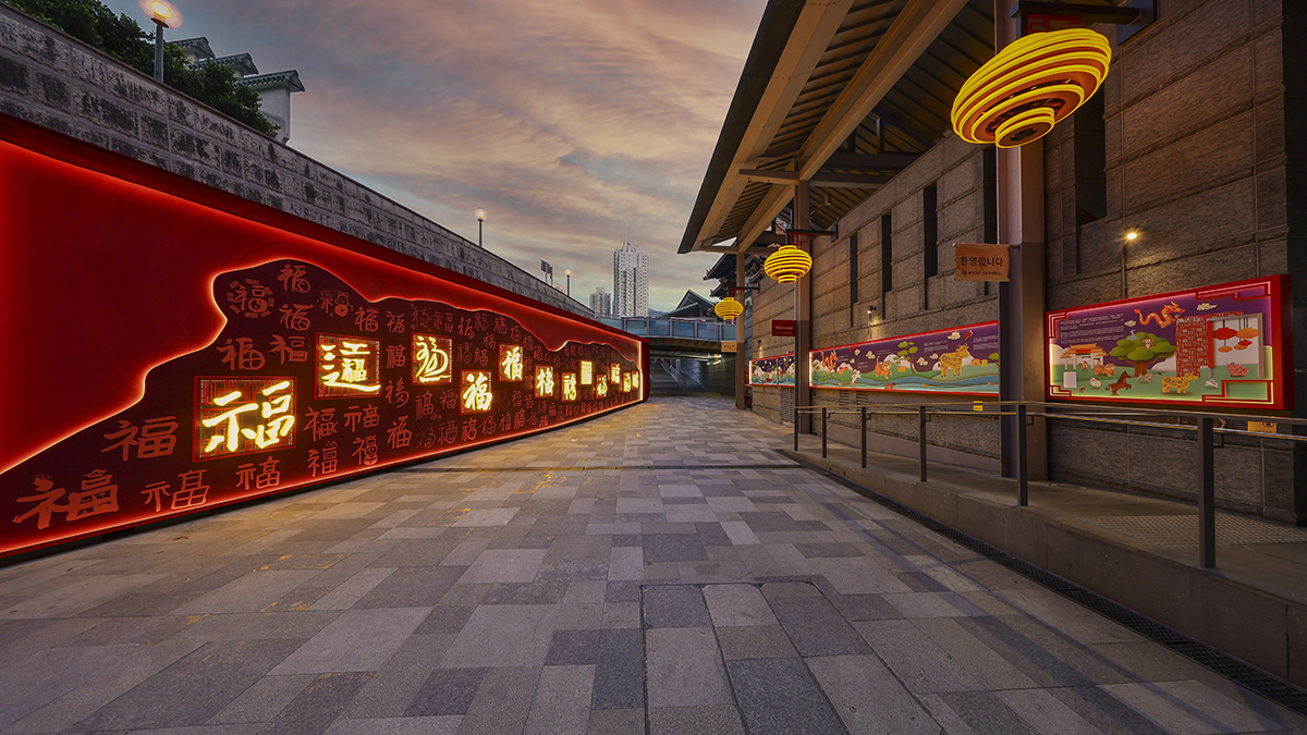 領展在貫通旅遊熱點黃大仙廟、黃大仙港鐵站B3出口及黃大仙中心北館的主要通道「祝福里」設置公共藝術裝置《福牆》,匯聚108位來自社會各界人士親筆書寫的「福」字墨寶。