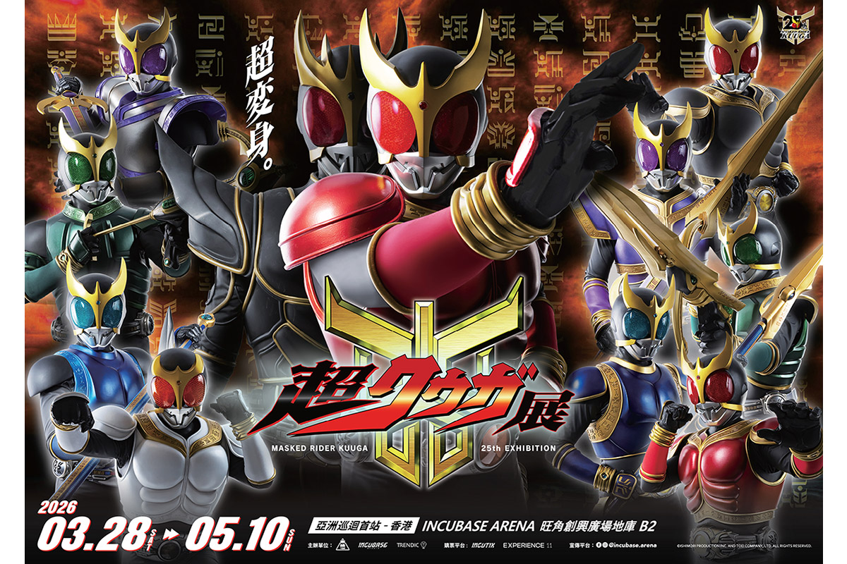 為紀念特攝經典《幪面超人古迦》播映25周年,INCUBASE Studio宣布將於3月28日至5月10日,於旺角INCUBASE Arena舉行《幪面超人古迦25周年紀念:超Kuuga展》。展覽將帶領觀眾重新感受「從零開始的時代」,首次公開平成首位英雄誕生的真相及如何開創特攝新紀元。另外,INCUBASE Arena推出限時「冒險家計劃」,為未持者帶來升級版的觀展及周邊選購體驗。