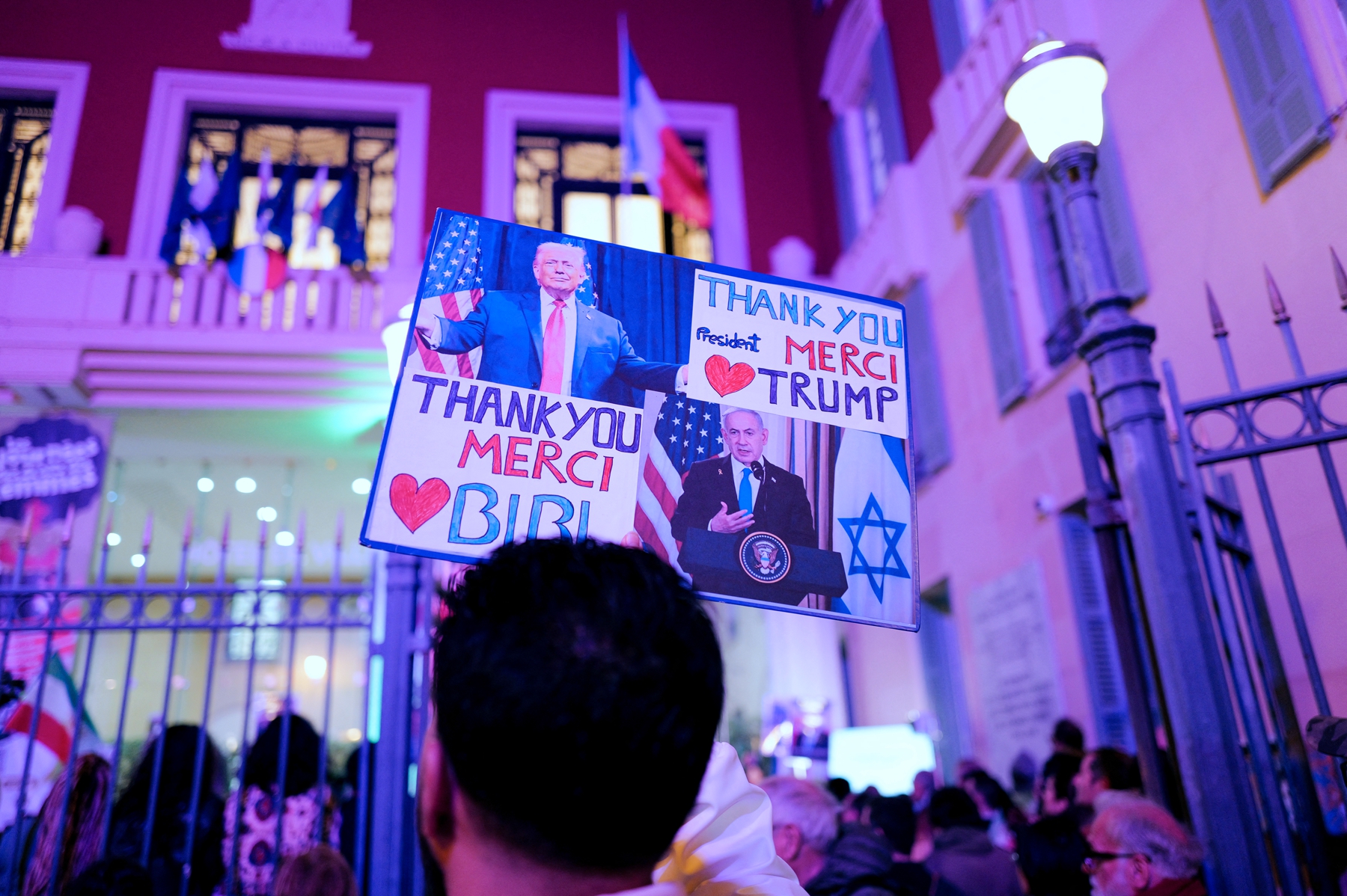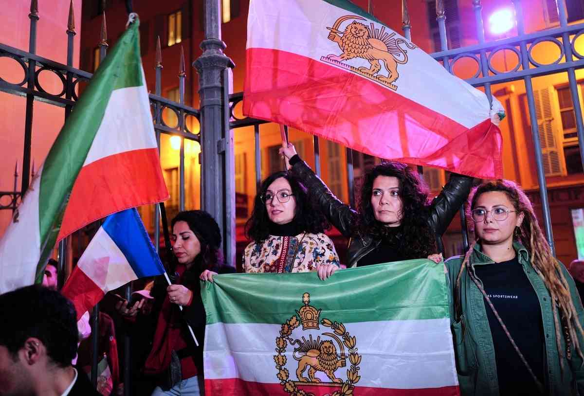 2026年3月2日,民眾在法國東南部的尼斯市政廳(city hall of Nice)前舉行集會,支持美國和以色列軍事打擊伊朗並聲援伊朗國內的反政府抗議者。(Valery Hache/AFP via Getty Images)