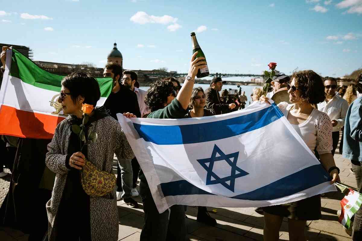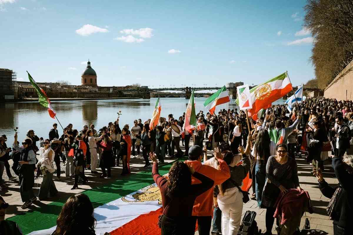 2026年3月1日,大批民眾在法國西南部城市圖盧茲(Toulouse)舉行集會,支持美國和以色列軍事打擊伊朗並慶祝哈梅內伊被斬首。(Pat Batard/Hans Lucas/AFP via Getty Images)