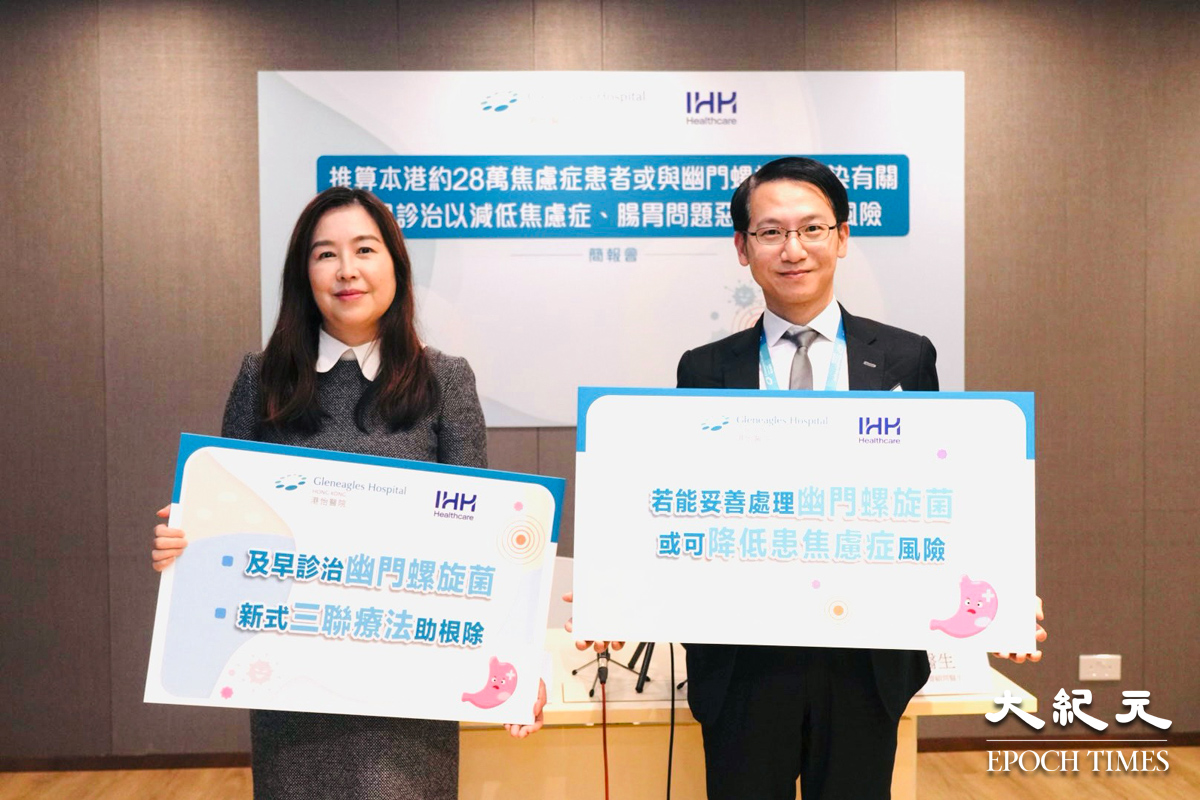 幽門螺旋菌是胃癌主要成因之一。一項最新研究指出,感染幽門螺旋菌增焦慮症風險1.5倍,而焦慮症或令腸胃問題惡化,且根據推算約285萬人受感染。根據港怡醫院顧問醫生王駿濱推算,本港約28萬焦慮症患者或與幽門螺旋菌感染有關。港怡醫院腸胃肝臟科顧問醫生陳萍兒醫生建議,市民應注意幽門螺旋菌與焦慮症的關係及提高認知,及早診治,有助減低焦慮症、腸胃問題惡化及胃癌風險。