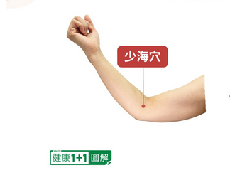 少海穴:位於手肘內側,肘橫紋內端與肱骨內上髁連線中點。有助於穩定情緒、調節出汗,並緩解因壓力或燥熱造成的不適。