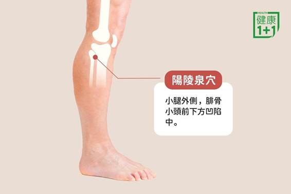 陽陵泉穴:腓骨小頭(坐姿時小腿外側突出的骨尖)前下方凹陷中。按摩陽陵泉穴有助於舒緩壓力,改善水份代謝。
