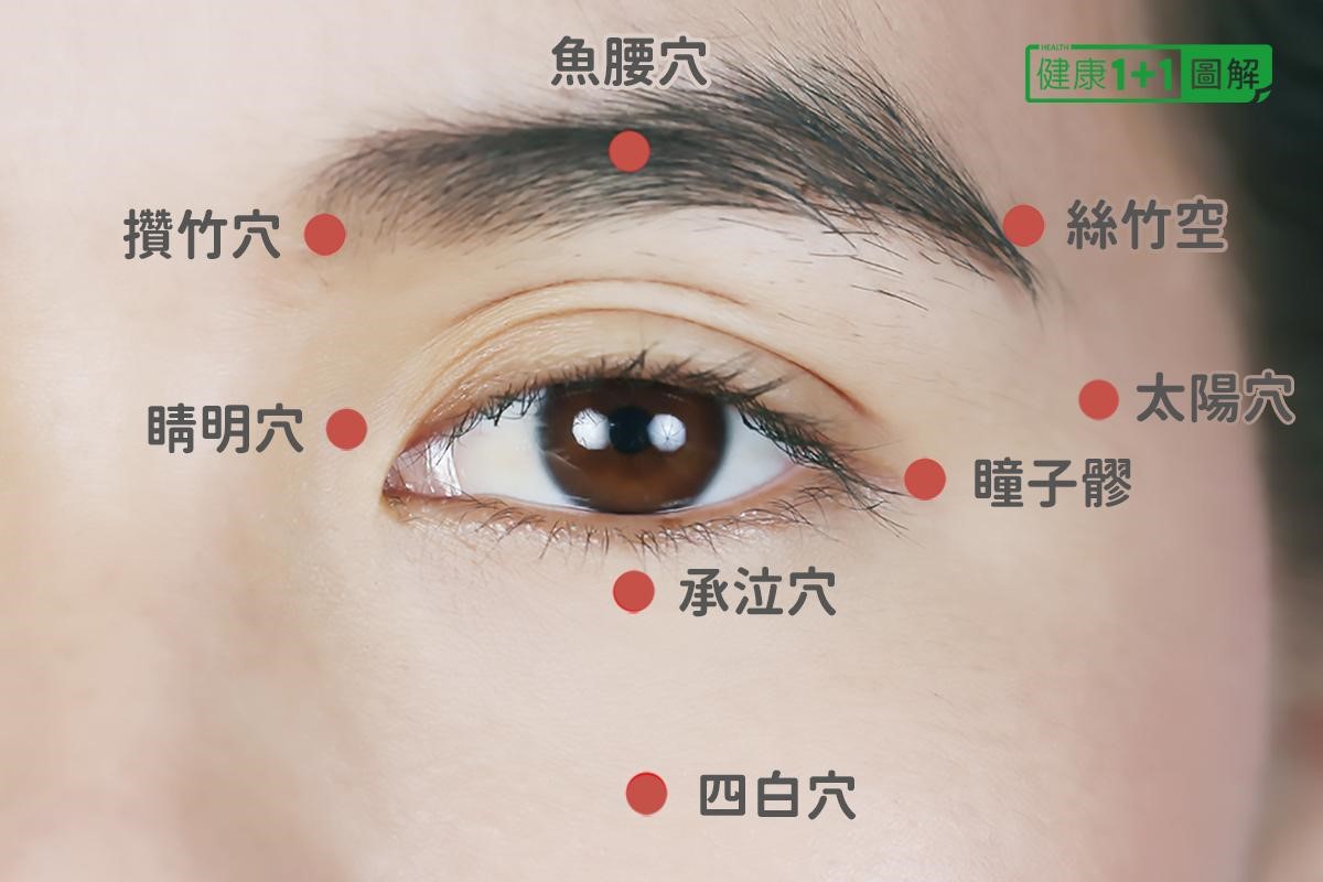 改善眼袋,也可從促進眼周血液循環著手。陳俊如表示,可按摩眼內眥的精明穴,沿著眉骨內側穴位至太陽穴,以及眼眶下方的承泣穴、四白穴等,每天輕柔按摩 5~10 圈,有助於促進眼周氣血循環,讓眼睛較為明亮。