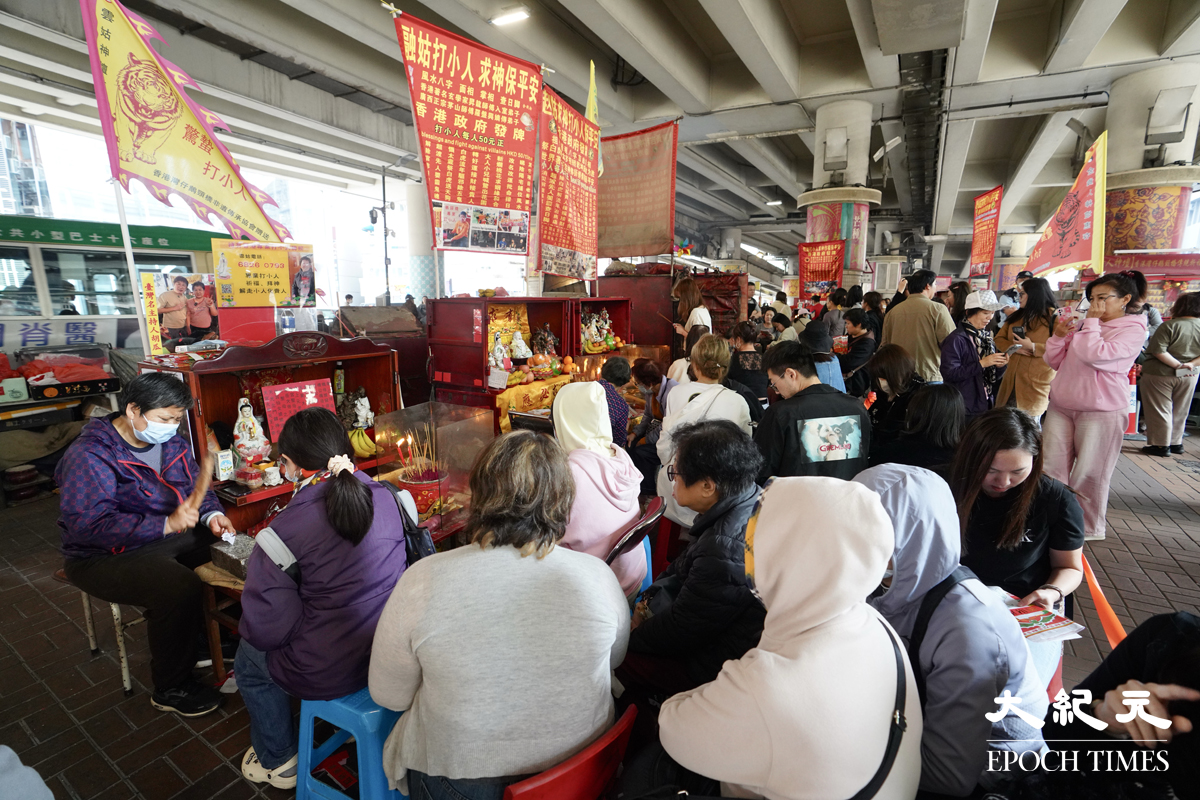 今日(5日)是二十四節氣中的「驚蟄」,銅鑼灣鵝頸橋底按傳統迎來「打小人」高峰。現場觀察所見,橋底多個熱門攤檔有數十人排隊等候,警方派員在場維持秩序。除了本地市民,亦有不少旅客特意跨境前來,希望藉此習俗消災解難。